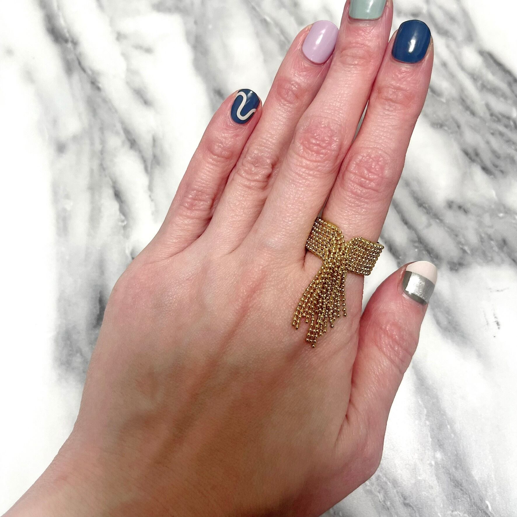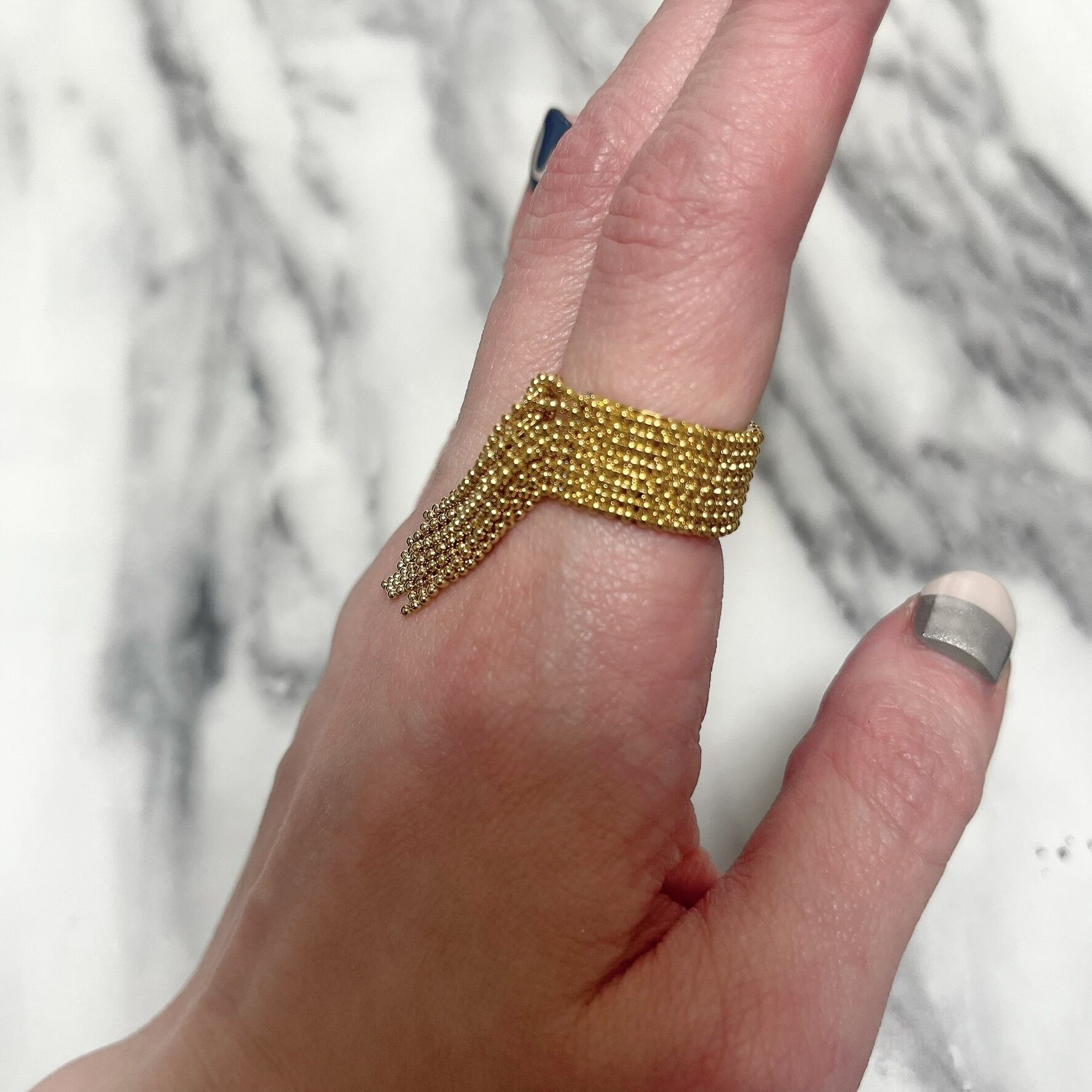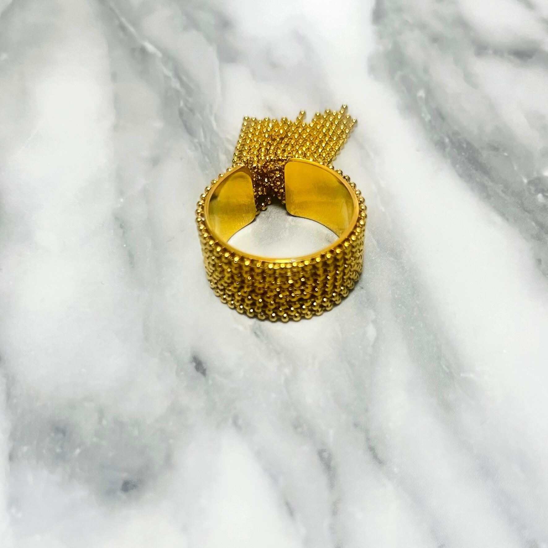 ステンレスシャランとボールチェーンデザインリング ゴールド